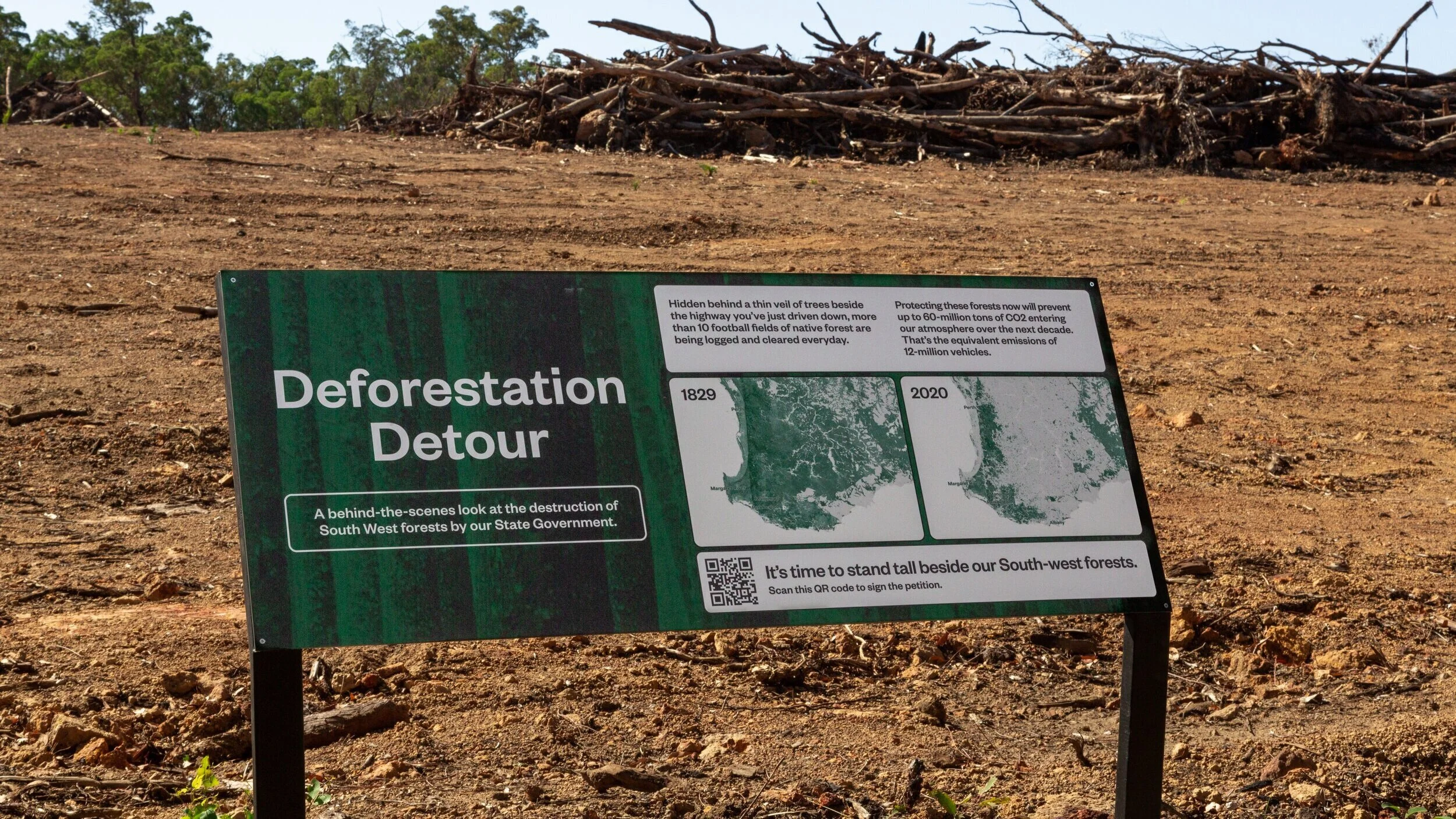 The “Deforestation Detour” was created for the WA Forest Alliance as a way to expose the deliberately hidden deforestation mines operating in Australia’s South West. The campaign highlighted the ongoing destruction of native forests and gave visitors an up-close and personal tour of the environmental destruction happening in their own backyard.